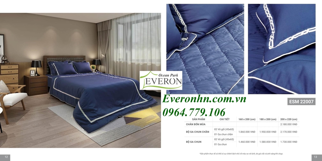 Bộ chăn ga ESM- 22007 gồm: